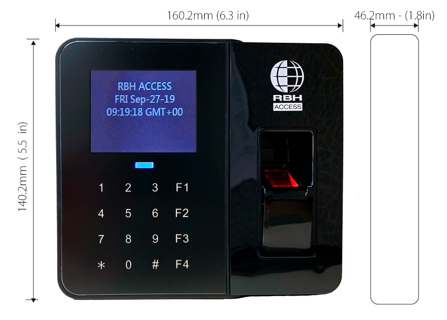 The RBH-BFR350 Fingerprint reader is integrated to all RBH software platforms for easy cardholder enrollment. Reads 125khz cards and tags. IP65 rating with 9500 template capacity. Credential, Finger, PIN, Credential + Finger, PIN+Finger, Credential+PIN operating modes