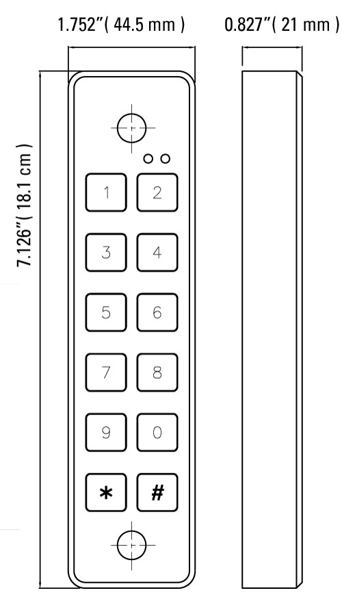 This mullion stlye keypad is ideal where mounting space is limited with tough durable Capacitance keys that can be cleaned and resist damage in harsh environments. Standard 26 bit weigand output