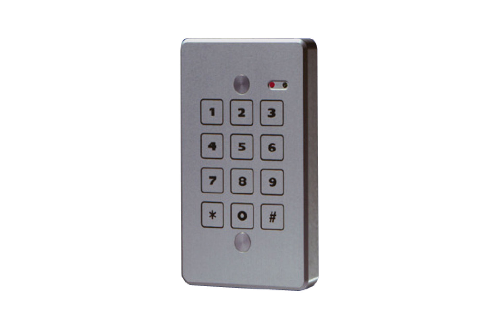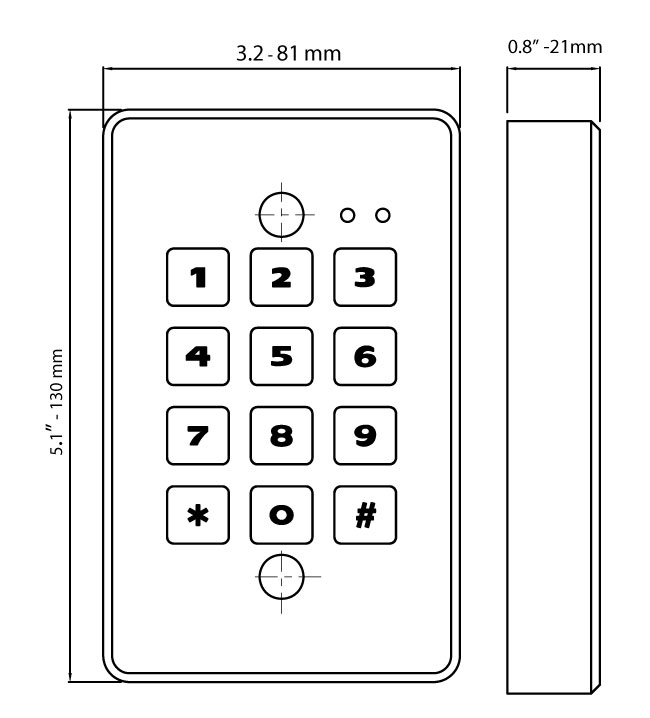 This lightswitch style keypad mounts to a standerd electrical box with tough durable Capacitance keys that can be cleaned and resist damage in harsh environments. Standard 26 bit weigand output
