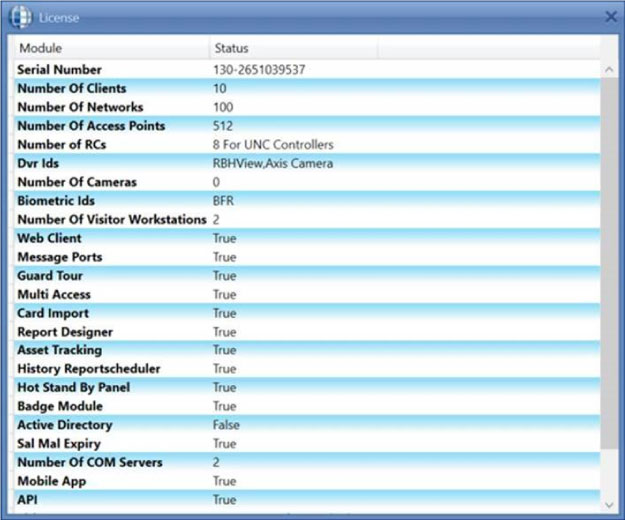AxiomXA Security System software comes with a 14 day trial period, after which the system will not run unless the user registers with RBH to activate.